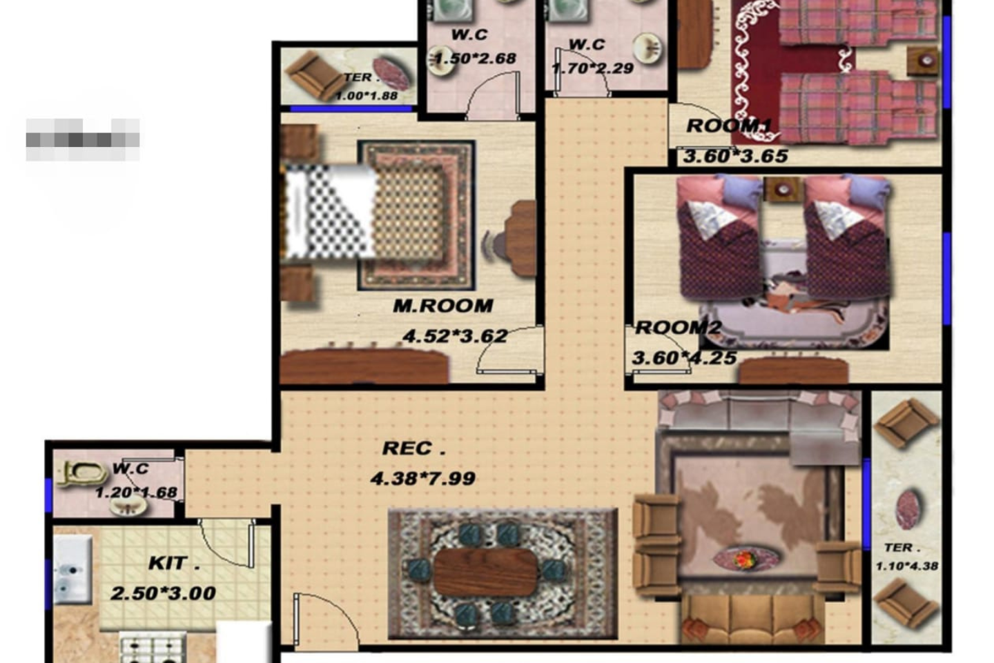 - 3 غرف نوم